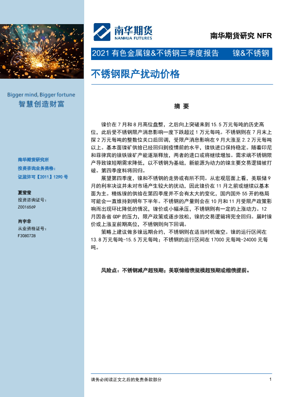 【南华期货】【20210930】2021有色金属镍&不锈钢三季度报告:不锈钢限产扰动价格-18页