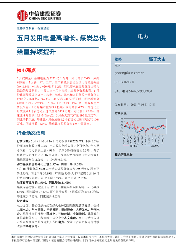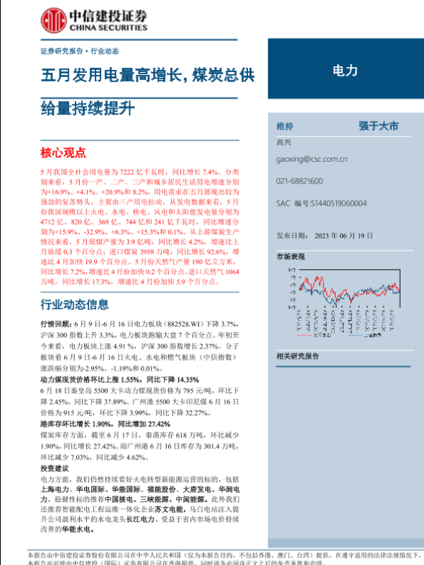【中信建投证券】【20230619】电力行业:五月发用电量高增长,煤炭总供给量持续提升-23页