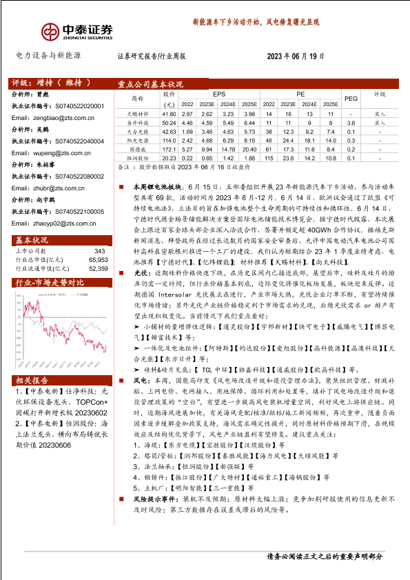 【中泰证券】【20230619】电力设备与新能源行业周报:新能源车下乡活动开始,风电修复曙光显现-25页