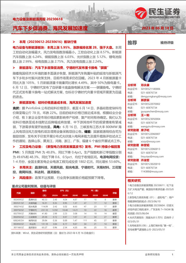 【民生证券】【20230618】电力设备及新能源周报:汽车下乡促消费,海风发展加速度-27页