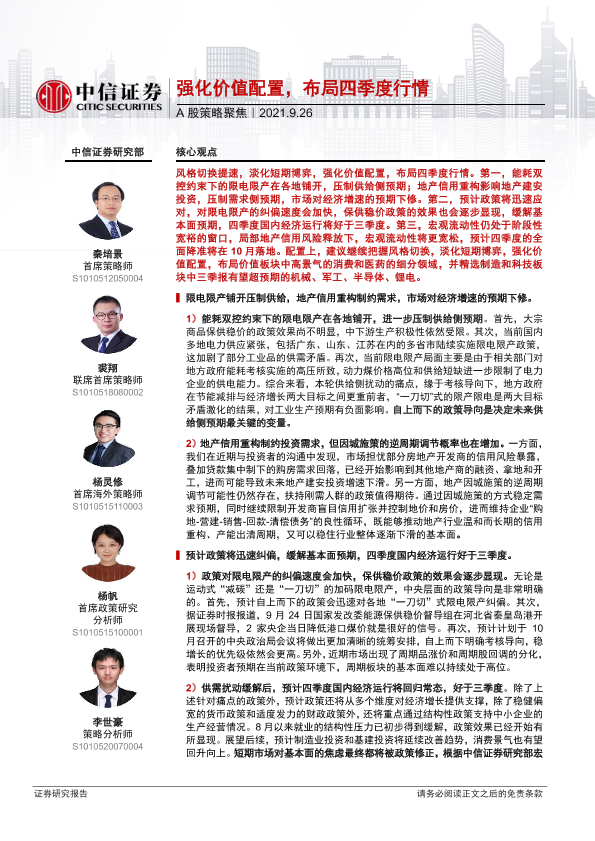 【中信证券】【20210926】A股策略聚焦:强化价值配置,布局四季度行情-20页