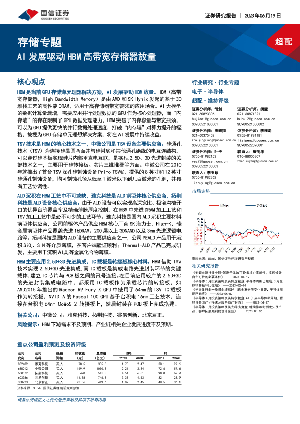 【国信证券】【20230619】电子行业存储专题:AI发展驱动HBM高带宽存储器放量-19页