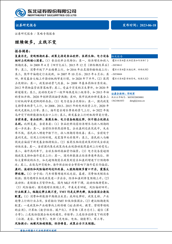 【东北证券】【20230618】策略专题报告:继续做多,主线不变-34页