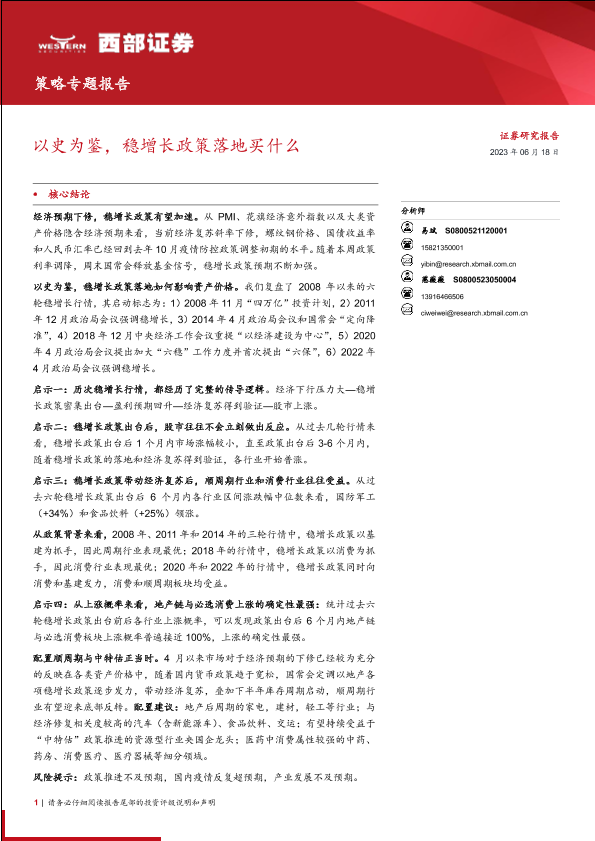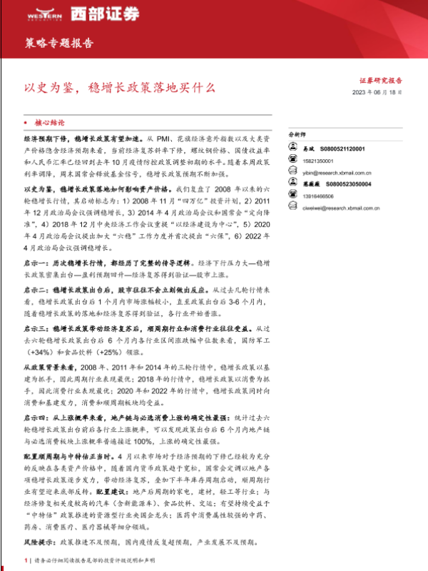 【西部证券】【20230618】策略专题报告:以史为鉴,稳增长政策落地买什么-40页