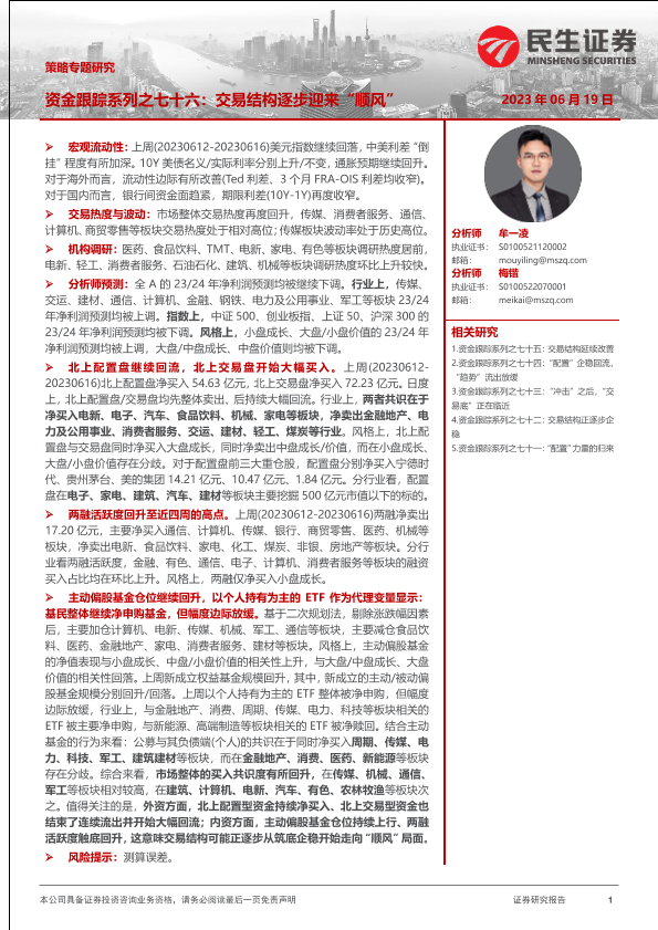 【民生证券】【20230619】策略专题研究:资金跟踪系列之七十六,交易结构逐步迎来“顺风”-36页