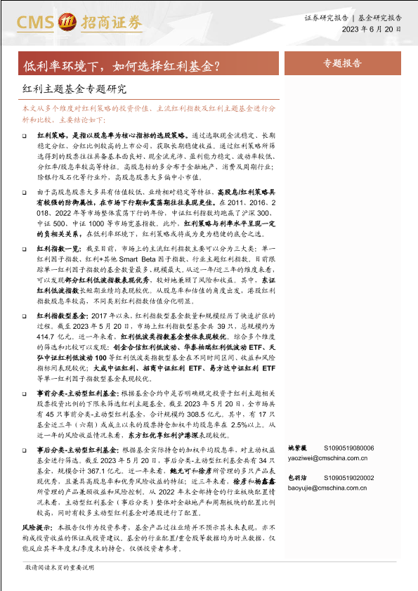 【海通证券】【20230620】红利主题基金专题研究:低利率环境下,如何选择红利基金?-24页