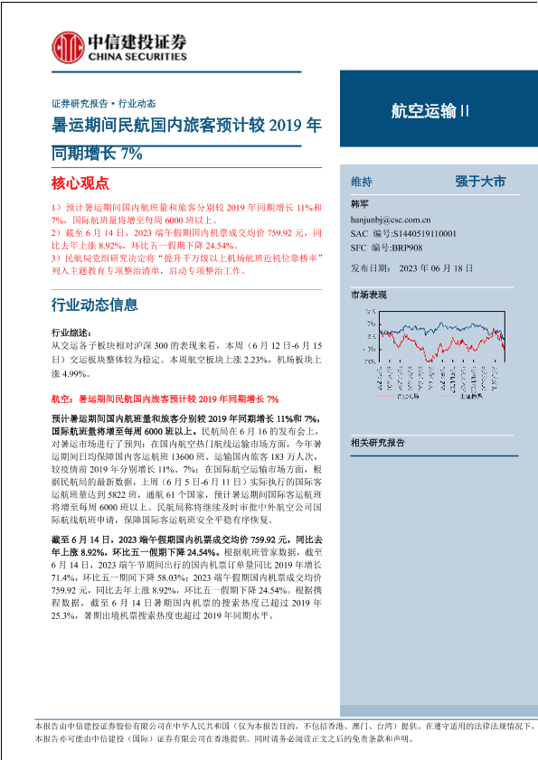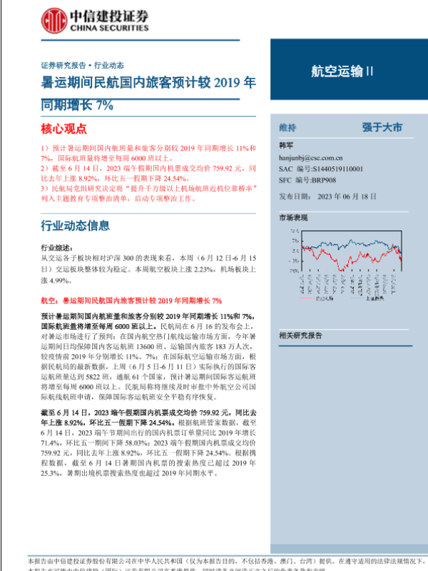 【中信建投证券】【20230618】航空运输行业:暑运期间民航国内旅客预计较2019年同期增长7%-25页
