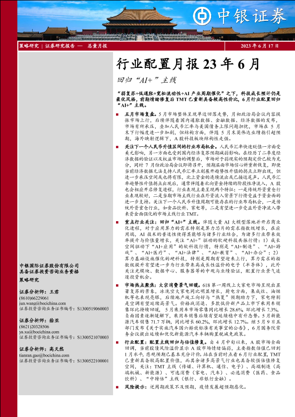 【中银证券】【20230617】行业配置月报23年6月:回归“AI+”主线-33页