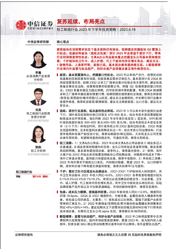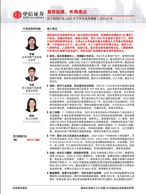 【中信证券】【20230618】轻工制造行业2023年下半年投资策略:复苏延续,布局亮点-40页