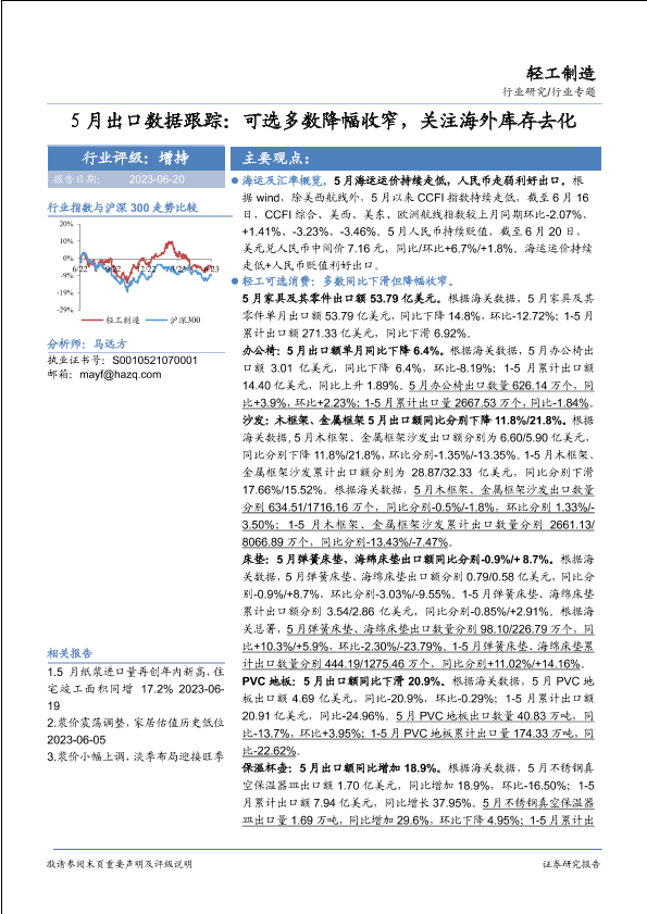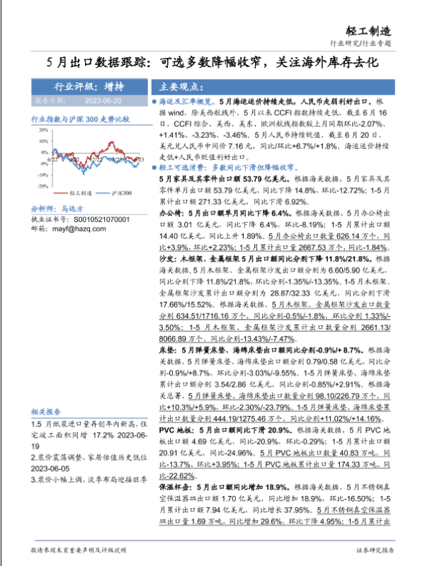 【华安证券】【20230620】轻工制造行业5月出口数据跟踪:可选多数降幅收窄,关注海外库存去化-24页
