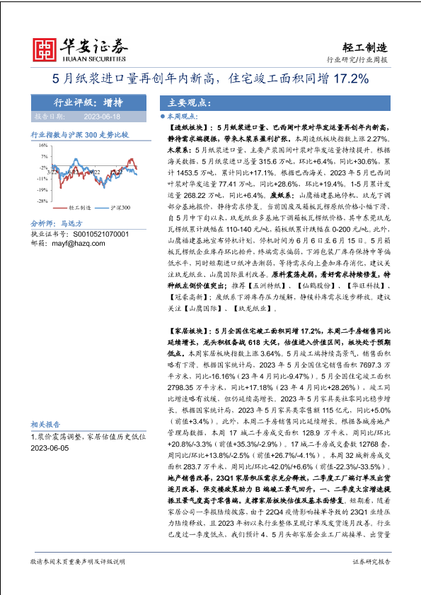 【华安证券】【20230618】轻工制造行业周报:5月纸浆进口量再创年内新高,住宅竣工面积同增17.2%-27页