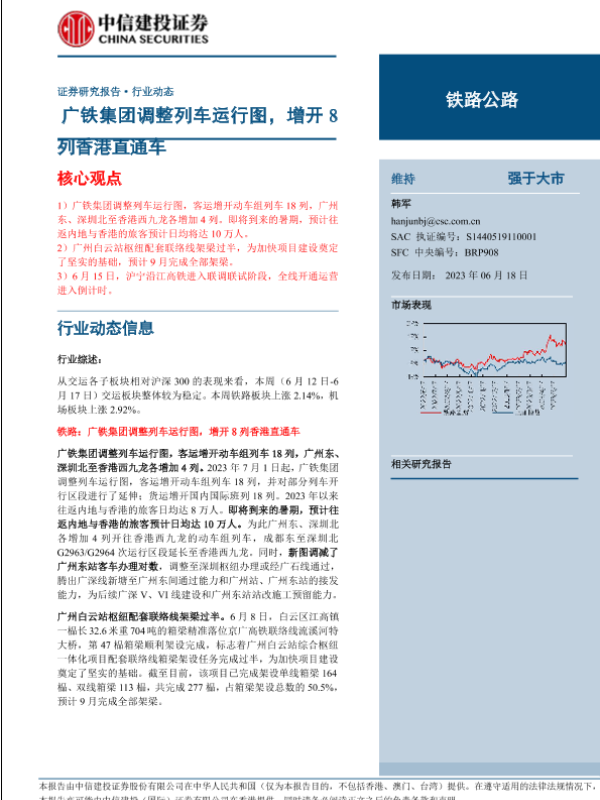 【中信建投证券】【20230618】铁路公路行业:广铁集团调整列车运行图,增开8列香港直通车-15页