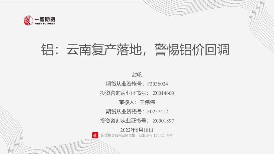 【一德期货】【20230618】铝:云南复产落地,警惕铝价回调-27页