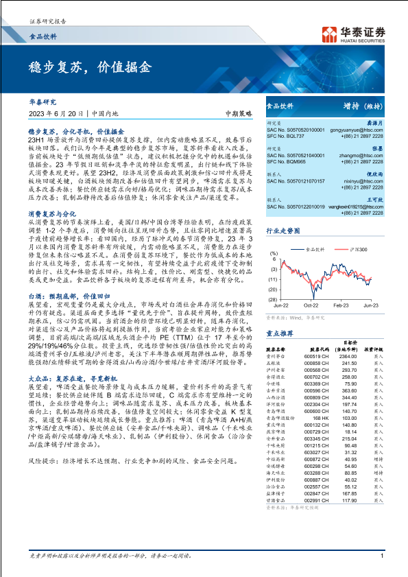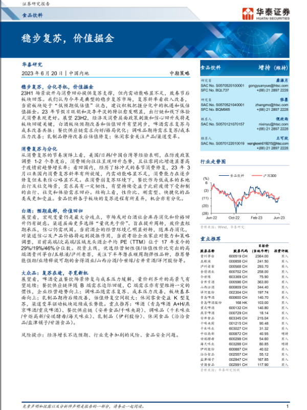 【华泰证券】【20230620】食品饮料行业中期策略:稳步复苏,价值掘金-26页