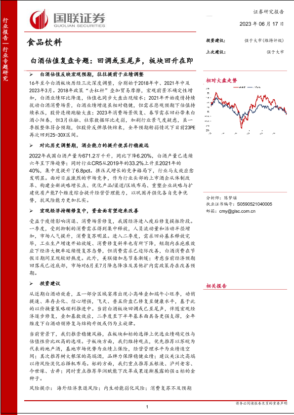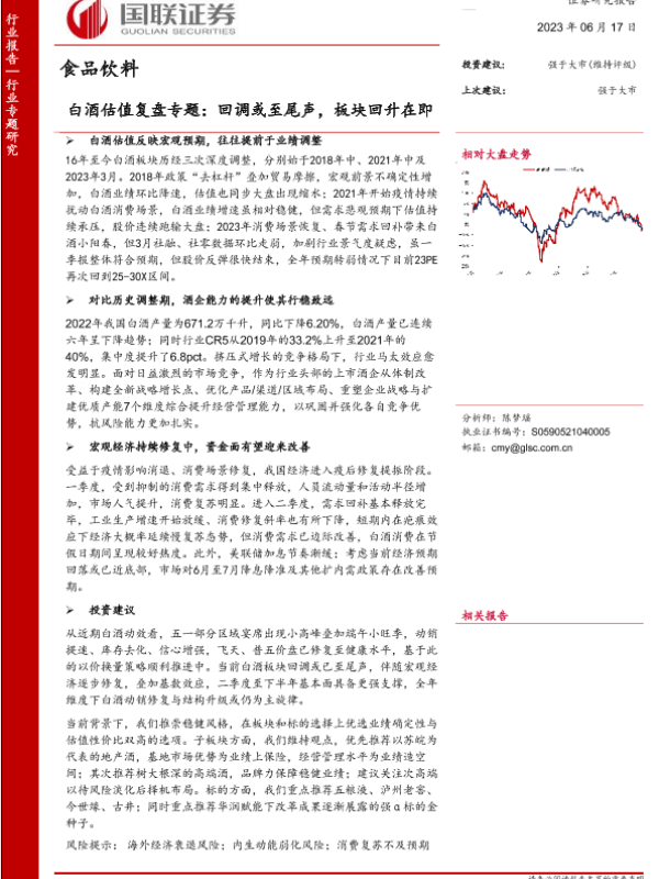 【国联证券】【20230617】食品饮料行业白酒估值复盘专题:回调或至尾声,板块回升在即-27页