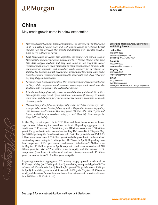 【J.P. Morgan】【20230613】May credit growth came in below expectation-10页