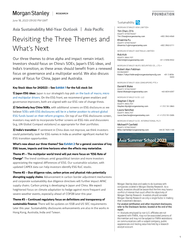 【Morgan Stanley】【20230618】Asia Sustainability Mid-Year Outlook Revisiting the Three Themes and What's Next-27页