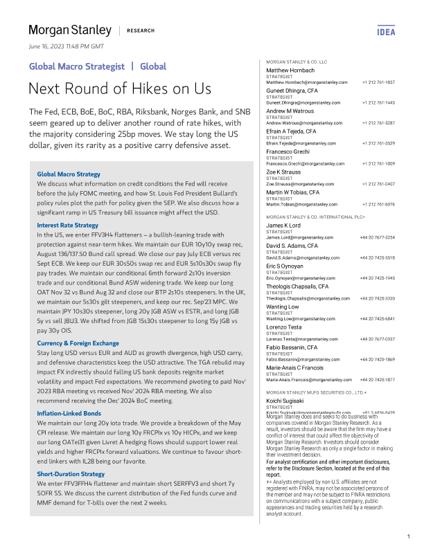 【Morgan Stanley】【20230616】Global Macro Strategist Next Round of Hikes on Us-93页