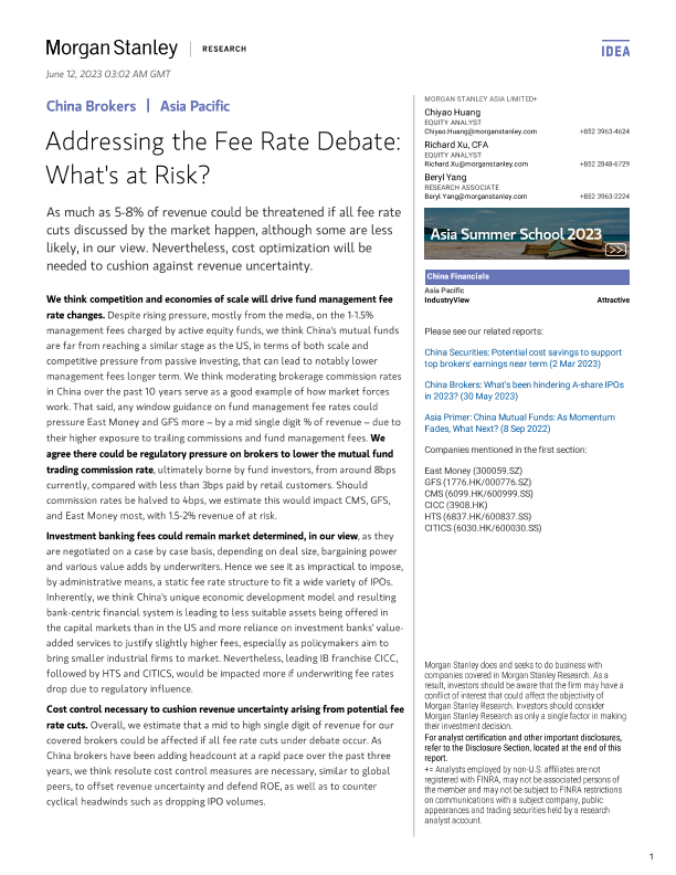 【Morgan Stanley】【20230612】中国券商应对费率辩论:风险何在?-20页