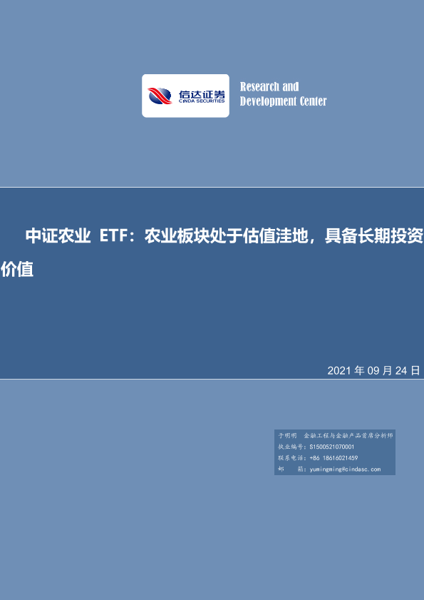 【信达证券】【20210924】中证农业ETF:农业板块处于估值洼地,具备长期投资价值-24页