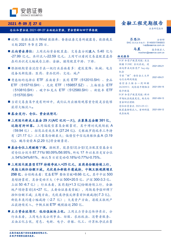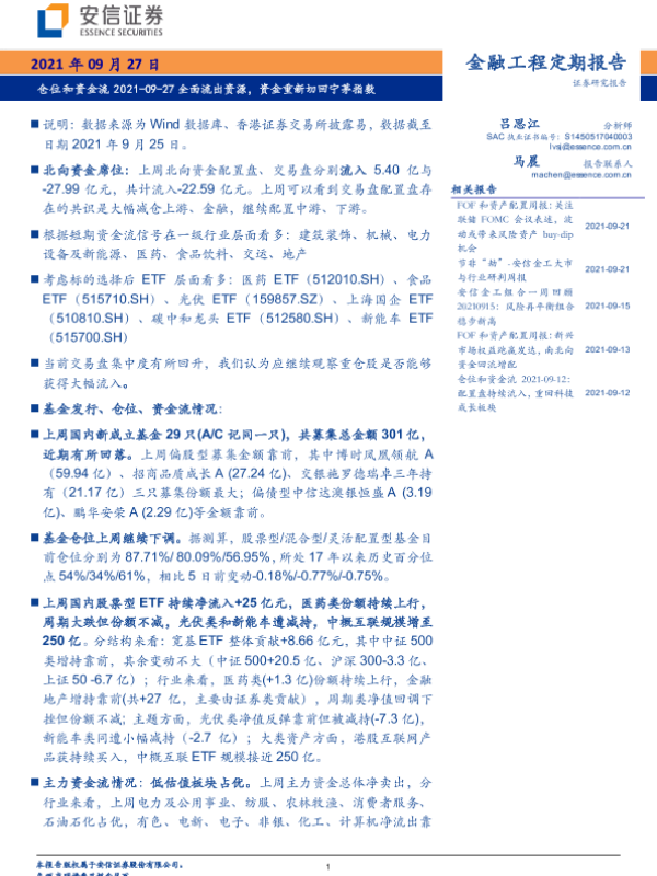 【安信证券】【20210927】仓位和资金流:全面流出资源,资金重新切回宁茅指数-21页