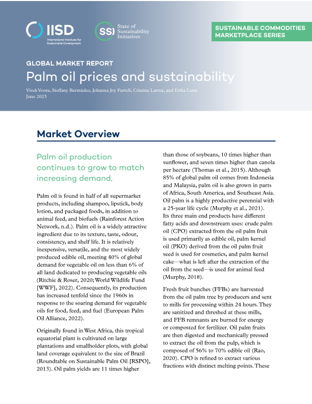 农产品价格 可持续性 国际贸易 棕榈油市场 环境影响
