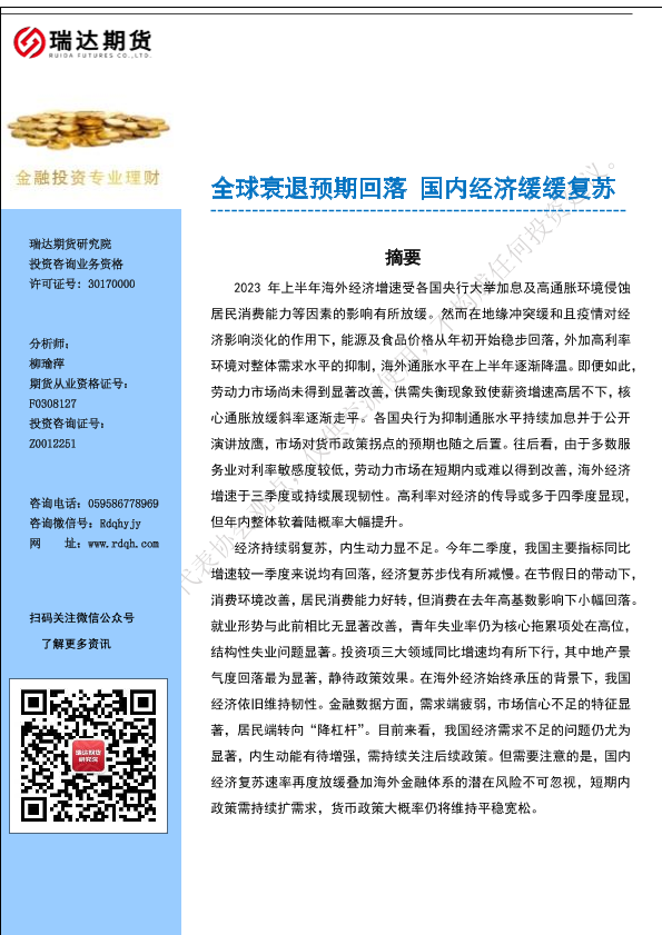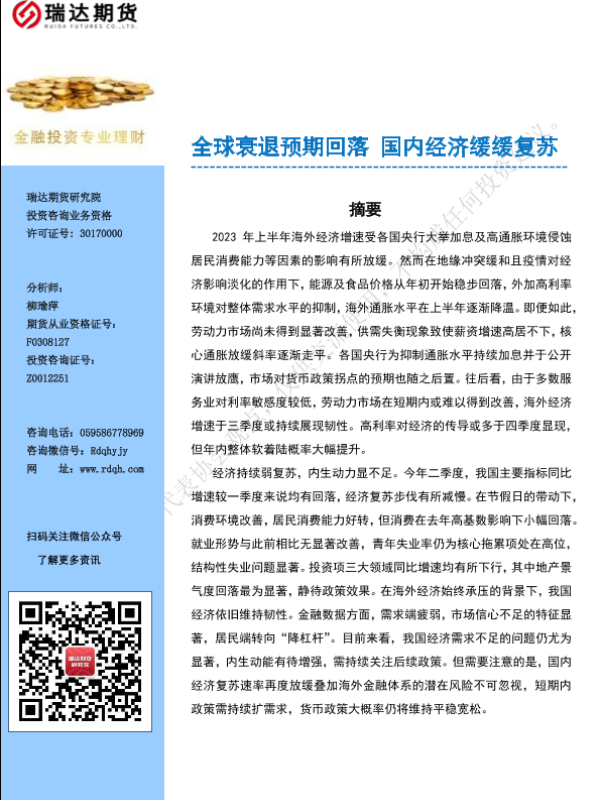 【瑞达期货】【20230704】全球衰退预期回落 国内经济缓缓复苏-39页