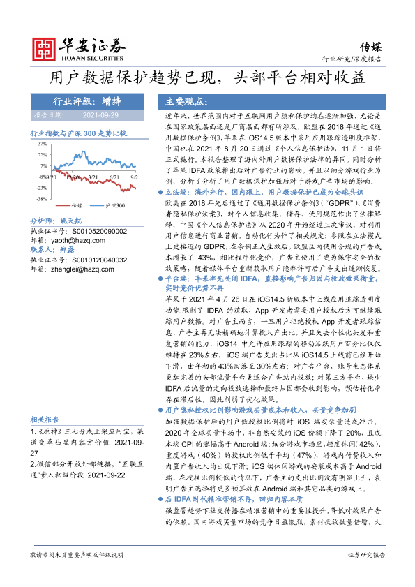 【华安证券】【20210929】传媒行业:用户数据保护趋势已现,头部平台相对收益-33页