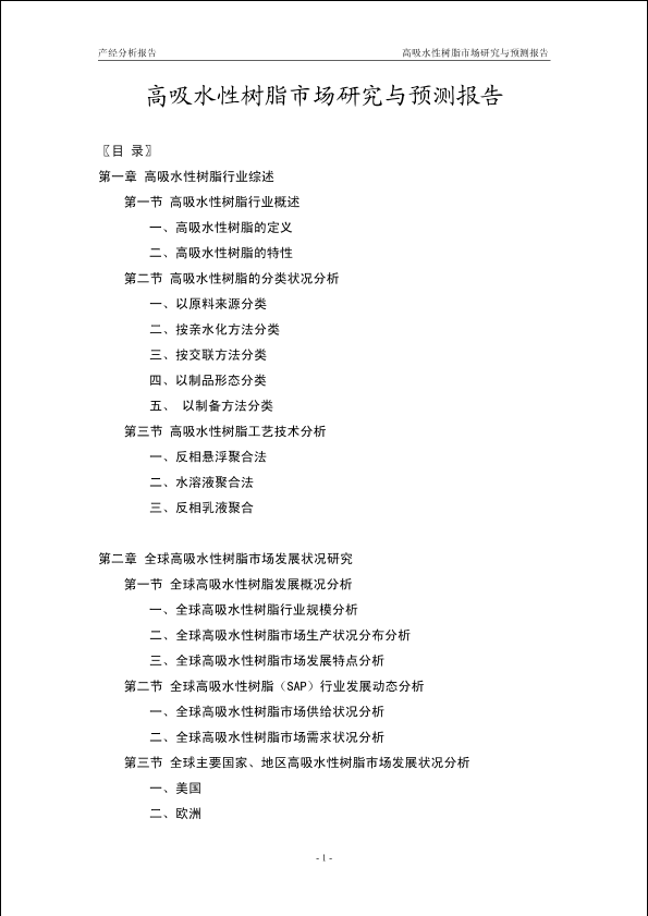 市场研究 应用领域 生产工艺 预测分析 高吸水性树脂