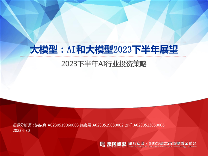【申万宏源】【20230630】2023下半年AI行业投资策略:大模型,AI和大模型2023下半年展望-32页