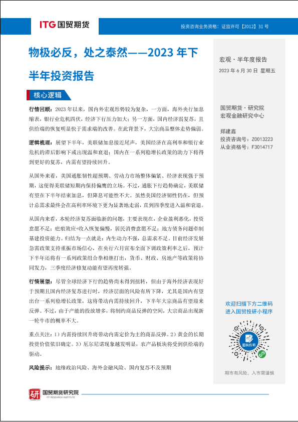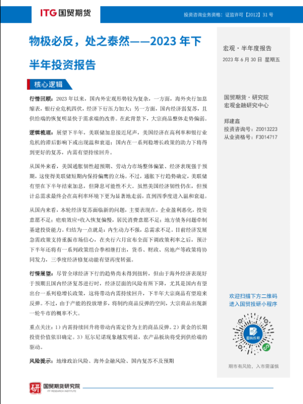 【国贸期货】【20230630】2023年下半年投资报告:物极必反,处之泰然-26页