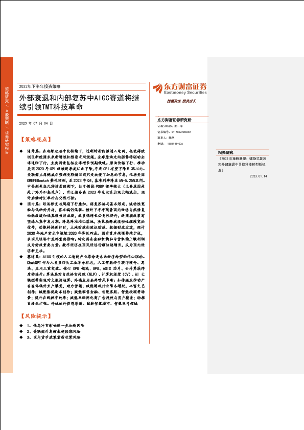 【东方财富证券】【20230704】2023年下半年投资策略:外部衰退和内部复苏中AIGC赛道将继续引领TMT科技革命-91页