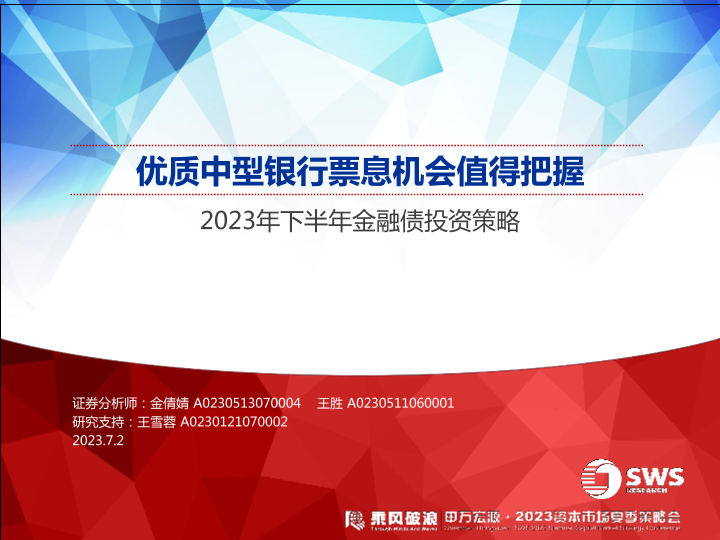【申万宏源】【20230702】2023年下半年金融债投资策略:优质中型银行票息机会值得把握-26页