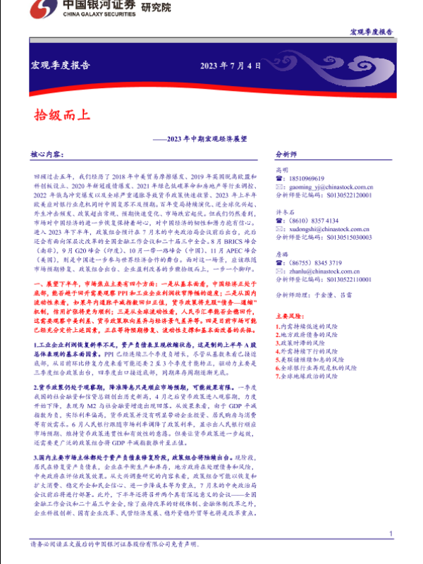 【银河证券】【20230704】2023年中期宏观经济展望:拾级而上-47页