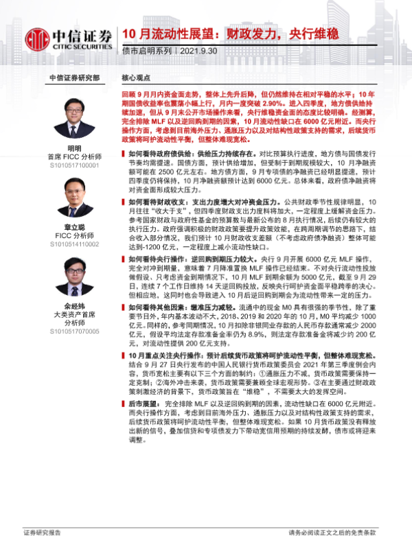 【中信证券】【20210930】债市启明系列:10月流动性展望,财政发力,央行维稳-30页