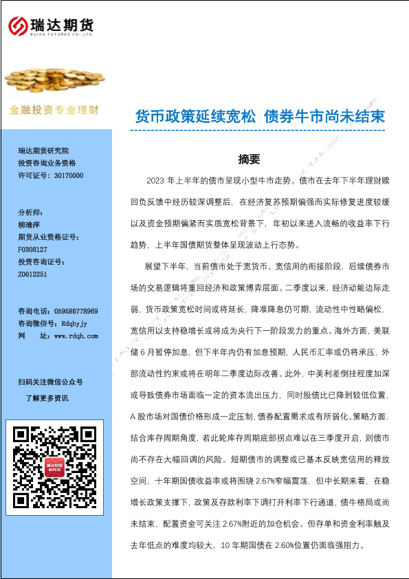 【瑞达期货】【20230703】2023年国债期货半年报:货币政策延续宽松,债券牛市尚未结束-32页