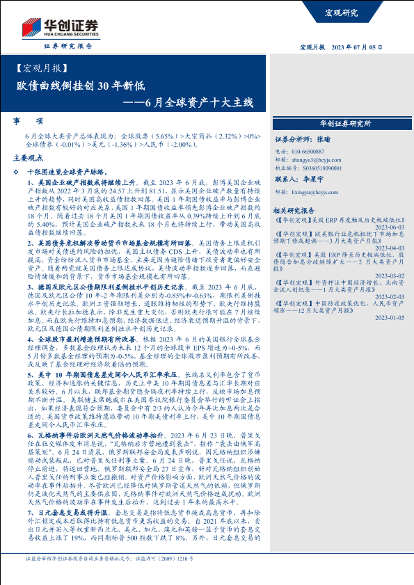 【华创证券】【20230705】6月全球资产十大主线:欧债曲线倒挂创30年新低-19页