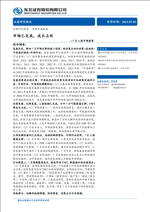 【东北证券】【20230702】7月A股市场展望:市场已见底,成长占优-34页