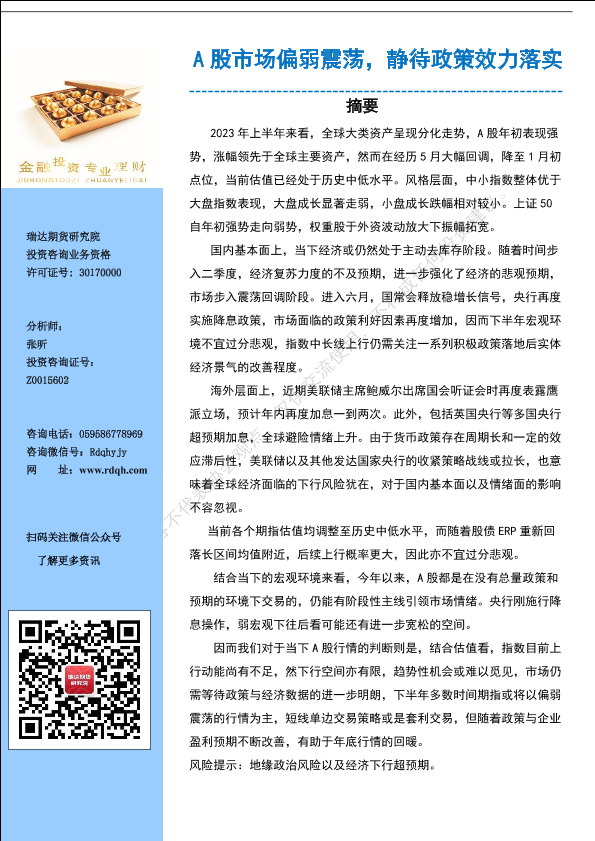 【瑞达期货】【20230704】A股市场偏弱震荡,静待政策效力落实-28页