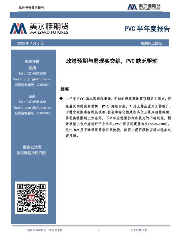 【美尔雅期货】【20230705】PVC半年度报告:政策预期与弱现实交织,PVC缺乏驱动-26页