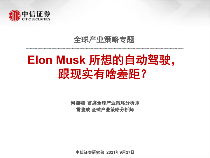 【中信证券】【20210927】全球产业策略专题:Elon Musk所想的自动驾驶,跟现实有啥差距?-54页