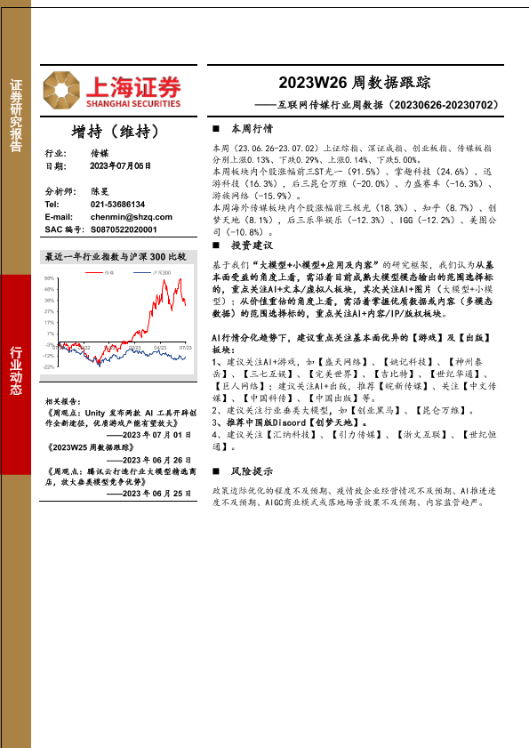 【上海证券】【20230705】互联网传媒行业周数据:2023W26周数据跟踪-20页
