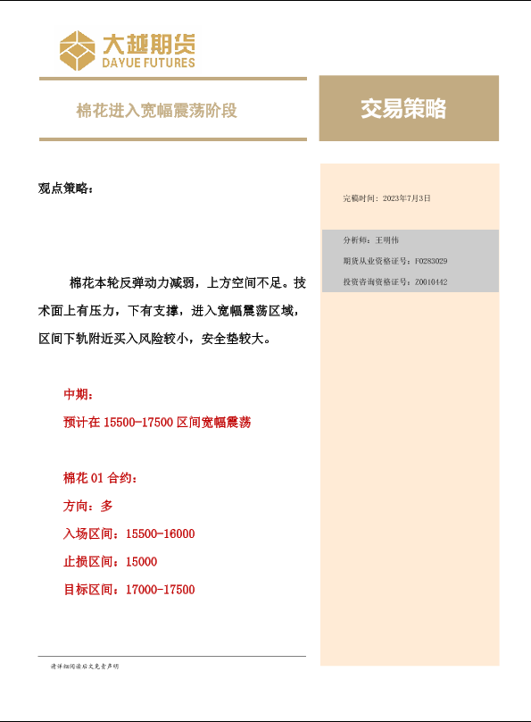 【大越期货】【20230703】交易策略:棉花进入宽幅震荡阶段-23页