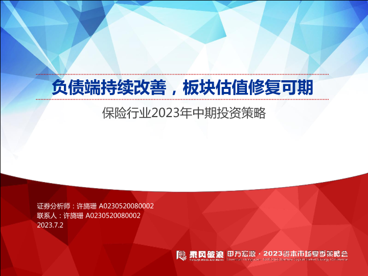 【申万宏源】【20230702】保险行业2023年中期投资策略:负债端持续改善,板块估值修复可期-30页