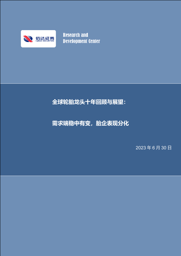 【信达证券】【20230630】全球轮胎龙头十年回顾与展望:需求端稳中有变,胎企表现分化-40页