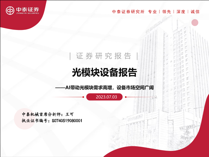 【中泰证券】【20230703】光模块设备报告-AI带动光模块需求高增-设备市场空间广阔-31页