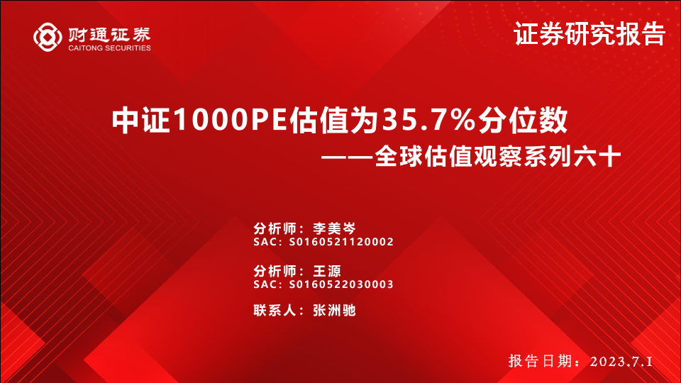【财通证券】【20230701】全球估值观察系列六十:中证1000PE估值为35.7%分位数-29页