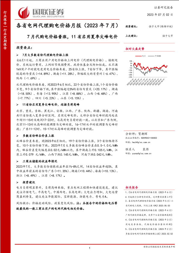 【国联证券】【20230702】公共事业行业各省电网代理购电价格月报(2023年7月)-42页