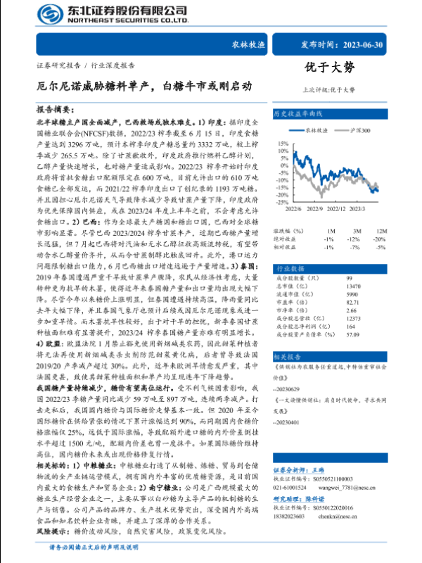 【东北证券】【20230630】厄尔尼诺威胁糖料单产,白糖牛市或刚启动-27页