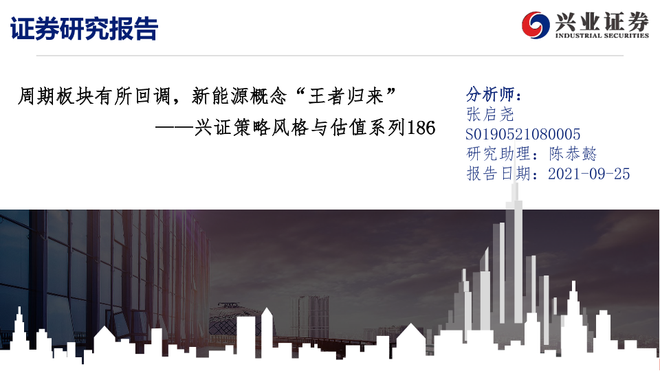 【兴业证券】【20210925】兴证策略风格与估值系列186:周期板块有所回调,新能源概念“王者归来”-20页